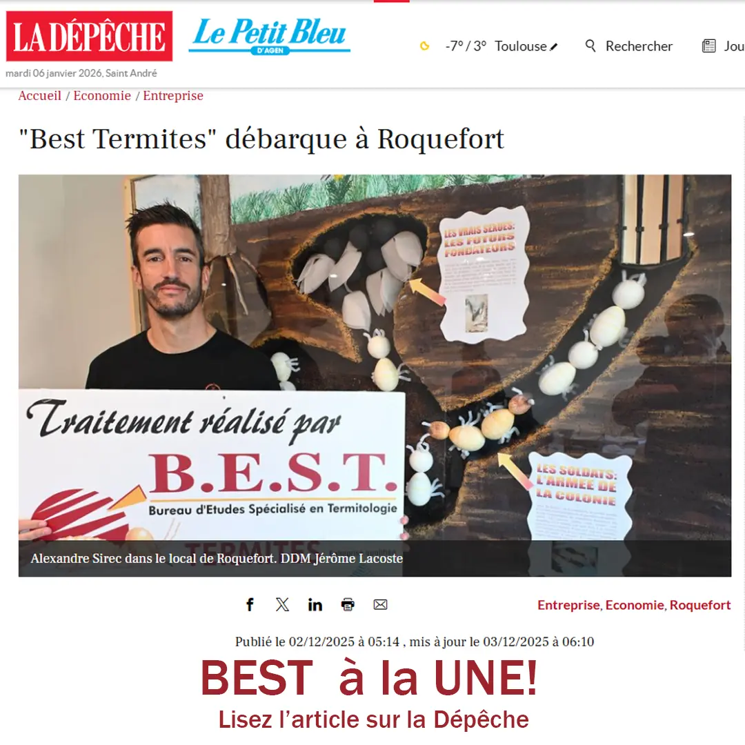 L’entreprise BEST TERMITES, spécialisée en traitement des bois vient d’intervenir afin d’éradiquer une colonie de termites souterrains à AGEN.